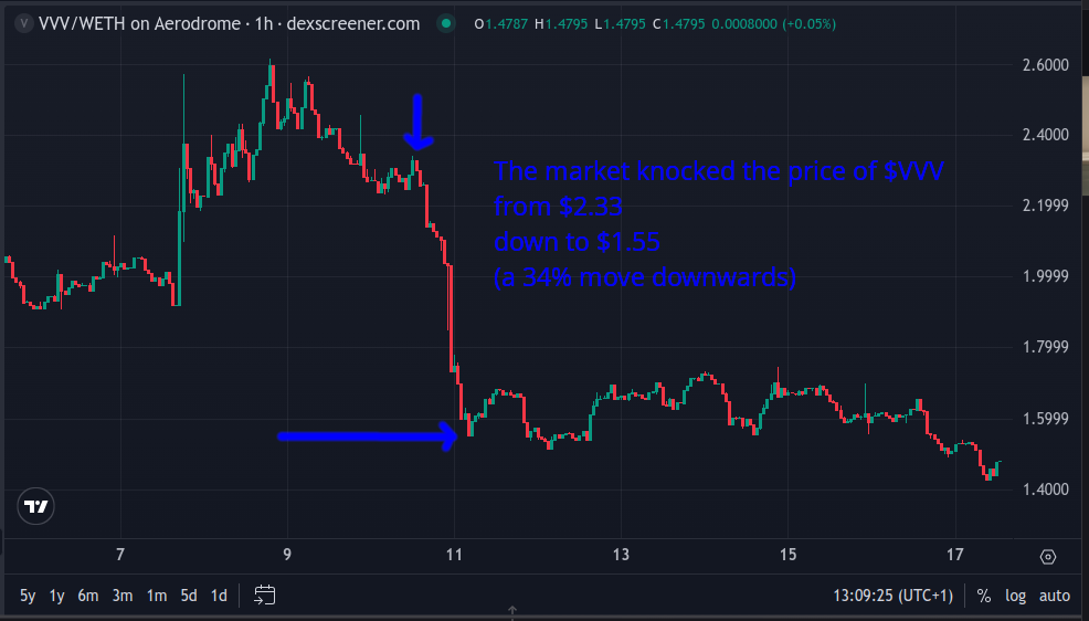 Even so, the price of $VVV dropped 34% from $2.33 to $1.55: