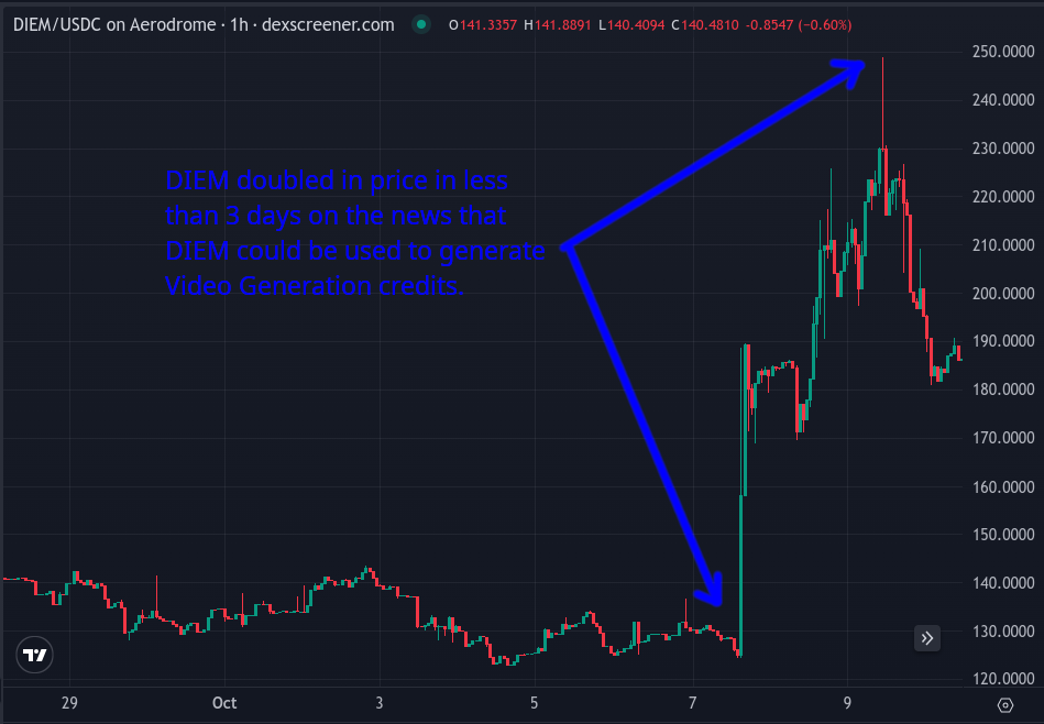 Probably this reflects that DIEM suddenly has more utility now that Video Generation can make use of it.