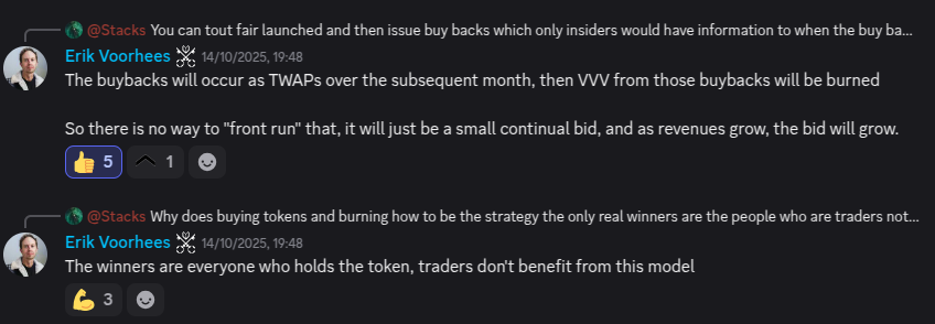 The buybacks will occur as TWAPs over the subsequent month, then VVV from those buybacks will be burned.