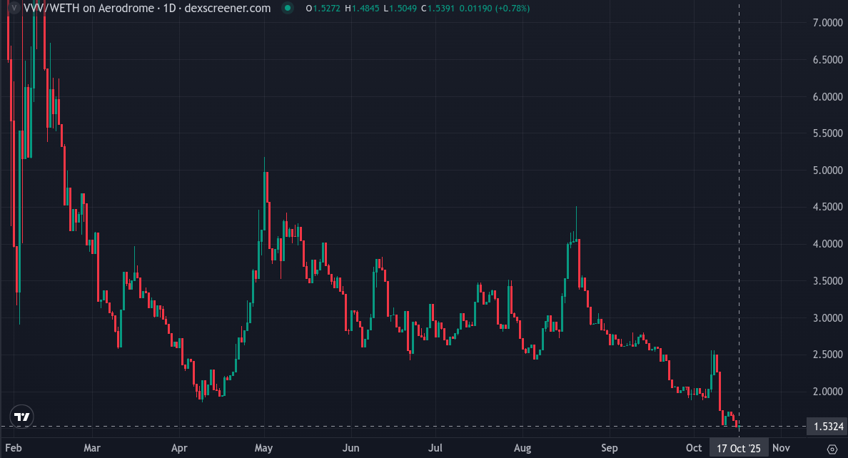 - The VVV inflation rate is being cut from 10M new tokens per year to 8M per year, starting 23 October 2025.